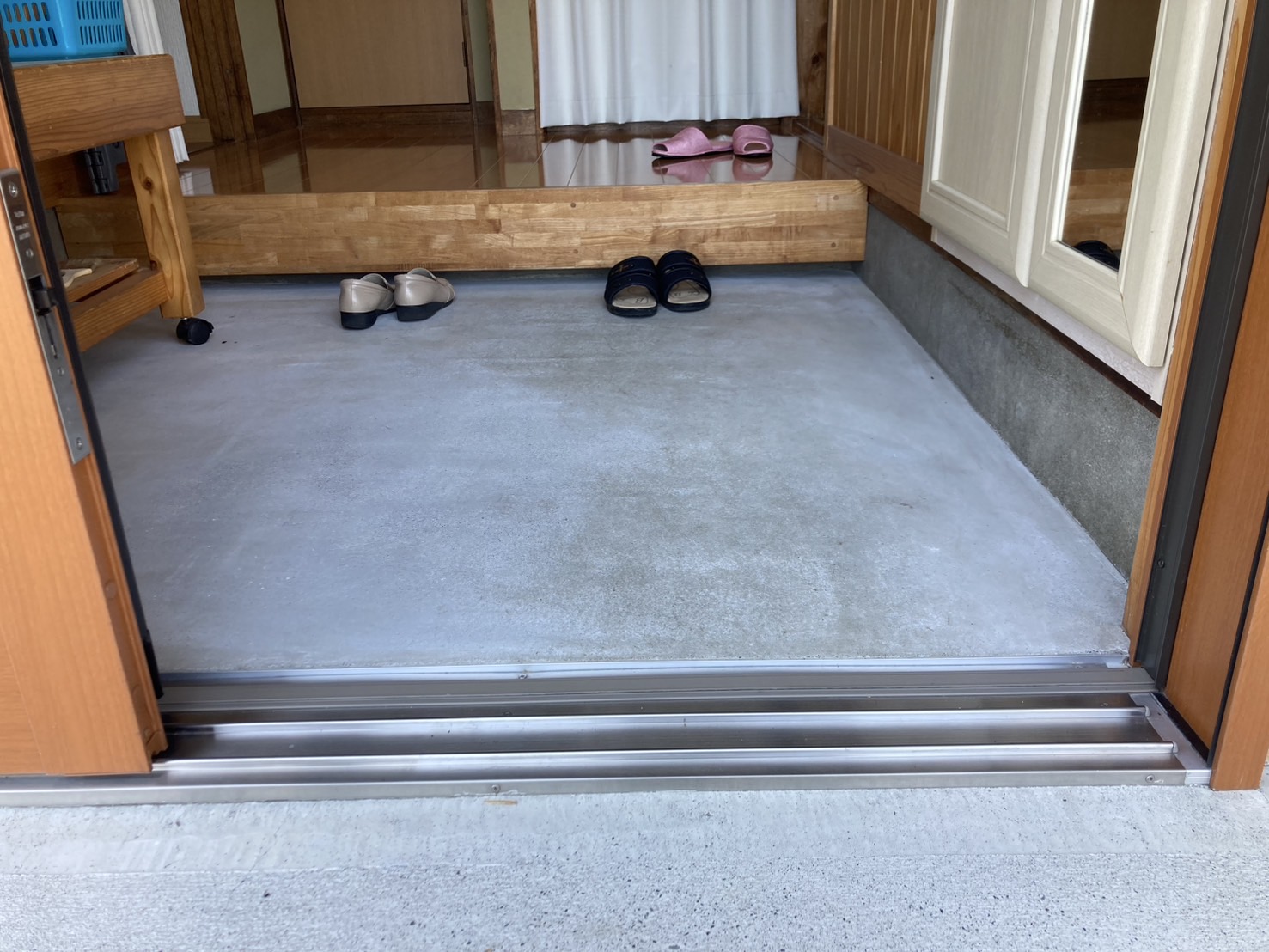 土間だった玄関スペースにタイルを張りました。